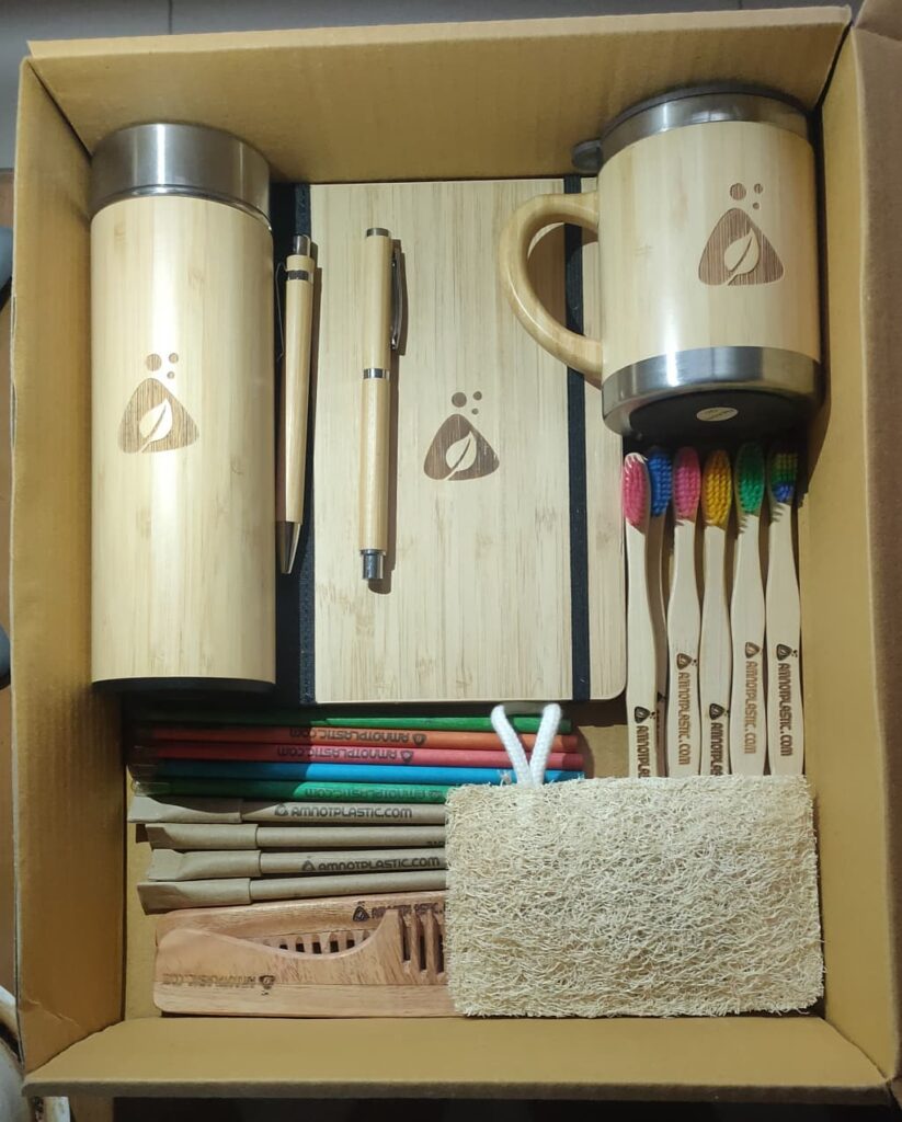 By choosing Amnotplastic ecofriendly gifts for your corporate giving, you are demonstrating your commitment to being environmentally responsible with Amnotplastic. You can create a positive impact on your employees, your clients, and your business partners, and have Amnotplastic as your eco-friendly customized kit designer that combines function and fashion with purpose.